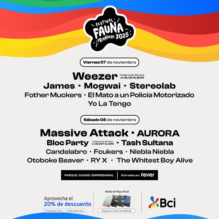 Fauna Primavera contará con grandes hitos tal como Massive Attack , quienes realizarán una nueva presentación en vivo que marcará el salto más transgresor en la colaboración entre 3D x United Visual Artists desde 2003. Por su parte Weezer celebrará los 30 años de su aplaudido Blue Album, placa homónima lanzada en mayo de 1994.