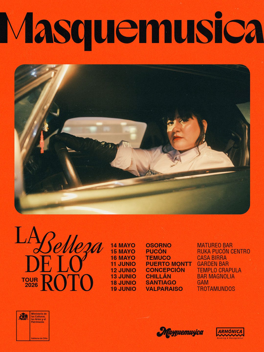 La gira recorerrá Osorno (14 de mayo), Pucón (15 de mayo), Temuco (16 de mayo), Puerto Montt (11 de junio), Concepción (12 de junio), Chillán (13 de junio), Valparaíso (19 de junio) y el lanzamiento en Santiago en el Centro GAM, programado para el 18 de junio.